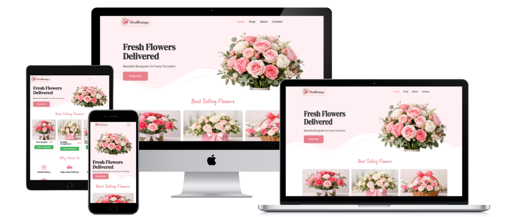 Overview: A premium landing page for a boutique flower shop, built entirely with Elementor Free and ElementsKit Lite. The goal was to create a high-end, “ThemeForest style” design using 0 budget for plugins.